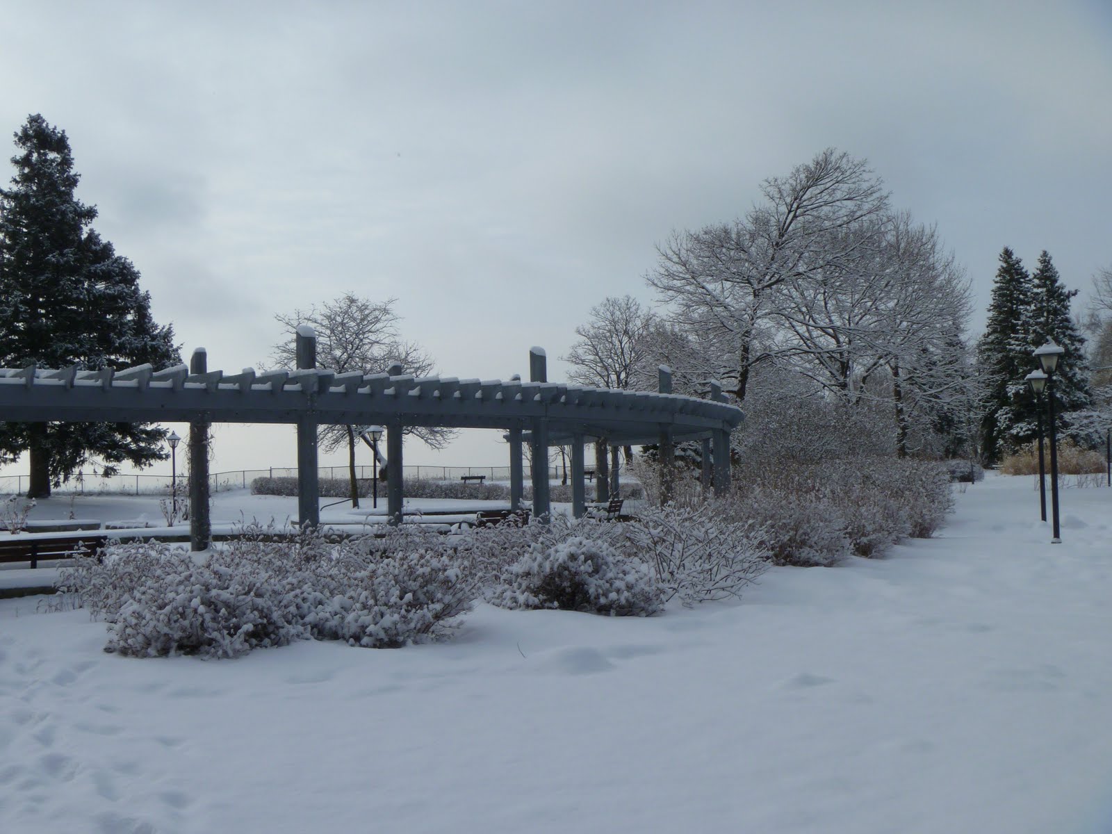 Usually by mid February I start getting really sick of winter but there are days like this past Sunday when everything looks so beautiful after a snowfall. We started to get light snow Saturday night and by Sunday morning everything was covered. I had a bunch of morning pet sits and couldn't believe how nice everything looked, snow clinging to the trees, the sky was a soft blue and the sun was hitting the snow. I popped over to Rosetta McClain Gardens and was lucky to find snow without footprints, and this is what I saw: